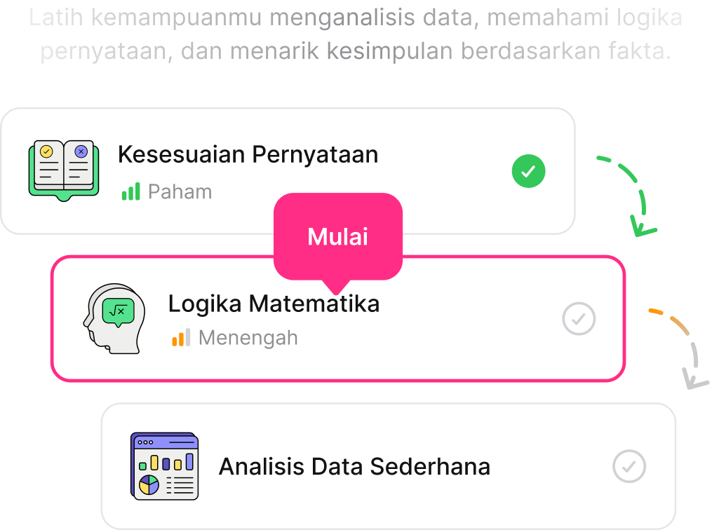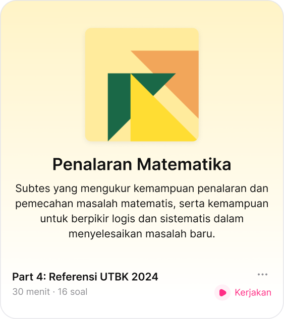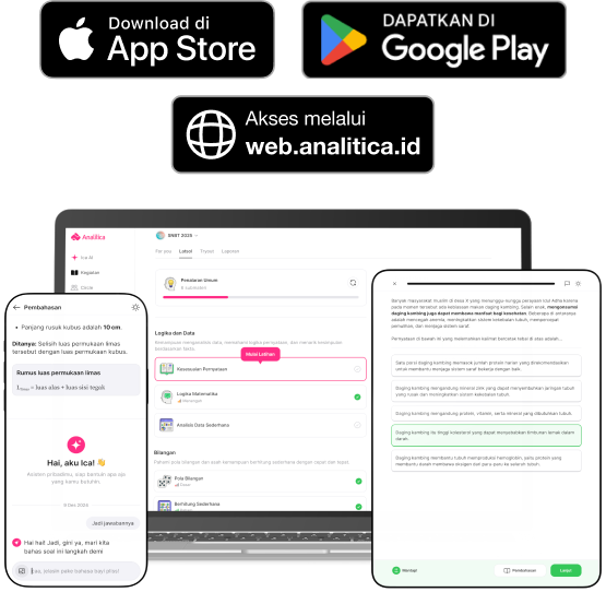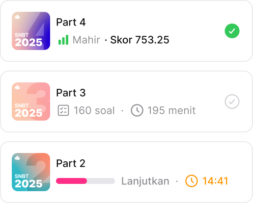 Berlatih kapan saja dengan ribuan soal berkualitas yang disusun sesuai topik dan tingkat kesulitan. Dapatkan skor dan pembahasan instan untuk terus mengasah kemampuanmu.