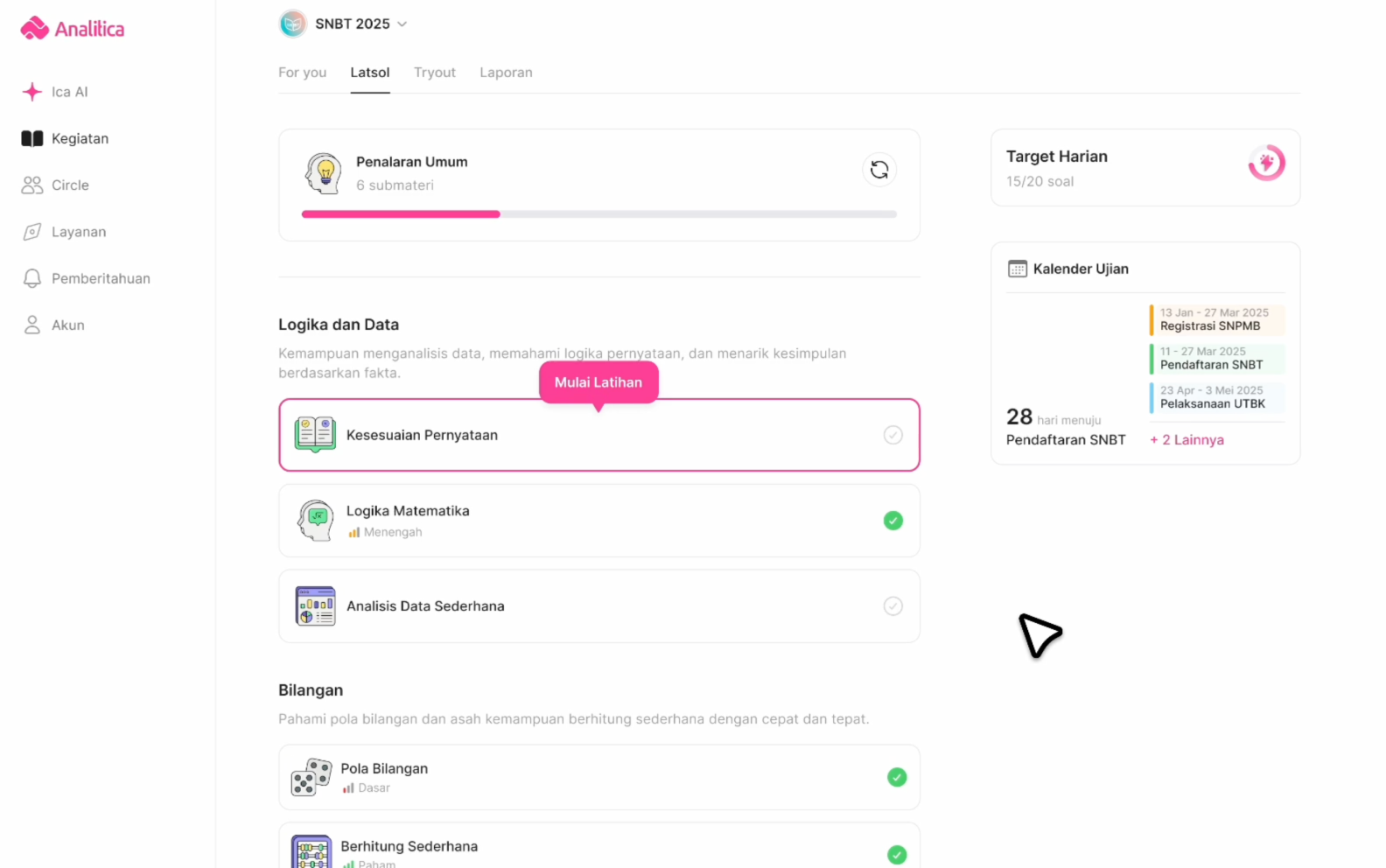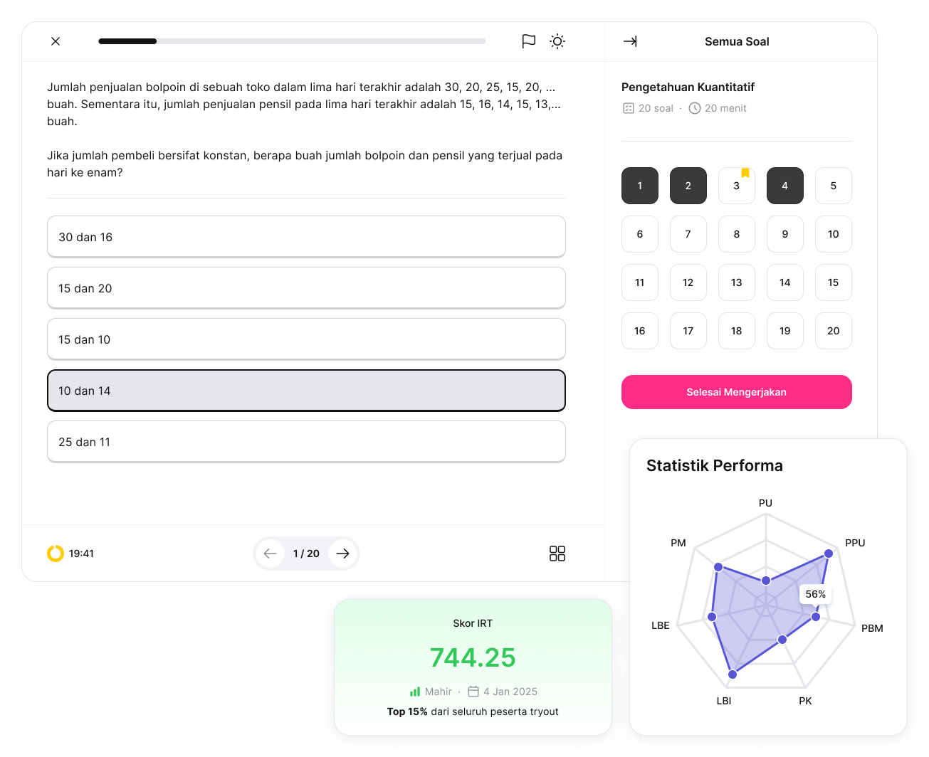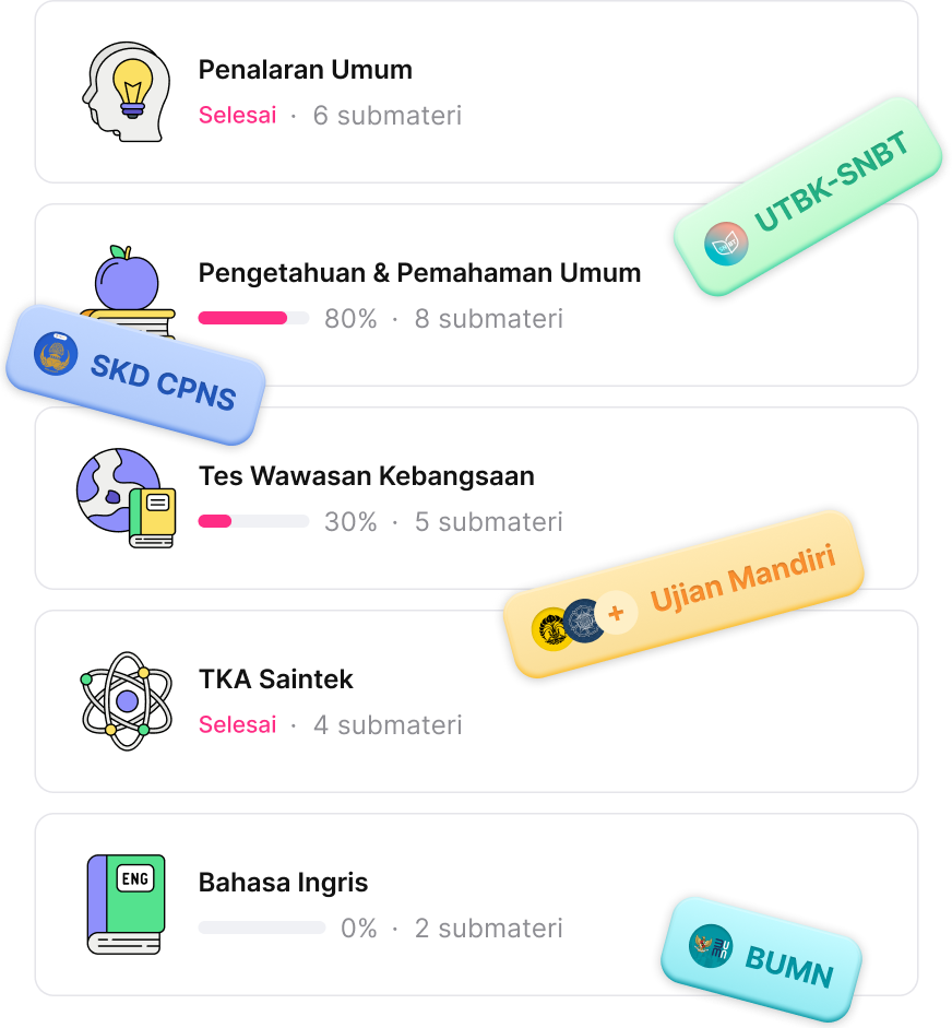 Berhenti loncat-loncat antar platform hanya untuk latihan. Kami menawarkan alat lengkap yang siap meningkatkan peluangmu menembus seleksi apa pun!