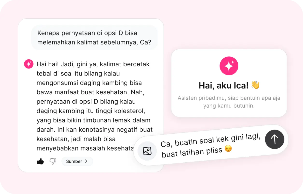 Ngobrol seputar topik Ujian Mandiri langsung dengan ICA AI. Tanyakan konsep, minta penjelasan soal sulit, atau cari info terbaru. Semua jawaban instan, kapan pun kamu perlu.